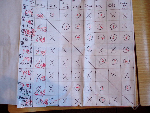 「手書きスコア」 8チーム総当りのリーグ戦