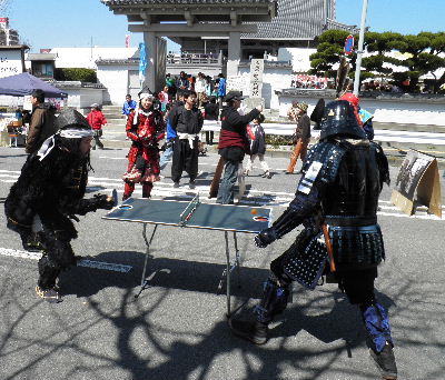 バスピンDEまちづくり実行委員会は、ここにも出店して、武将(昔の人)や、ゆるキャラや、現代人の方々にバスピンを楽しんで頂きました。
